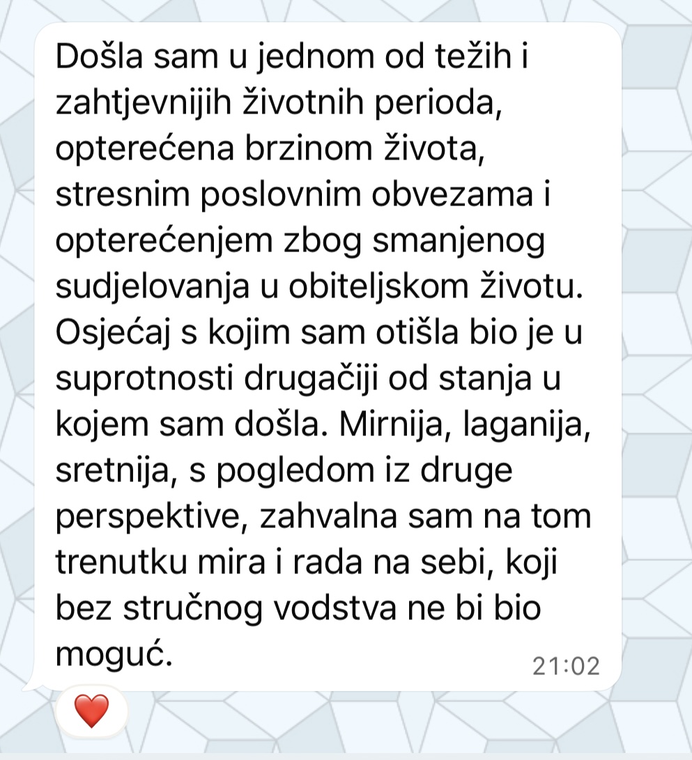 Moje klijentice nisu žene koje ne znaju funkcionirati pod stresom – upravo suprotno. Sposobne su raditi pod pritiskom i isporučivati na visokoj razini. Ono što ih najviše frustrira nije stres sam po sebi, već pad produktivnosti uzrokovan preopterećenjem i mentalnim zamorom. Njihovo vrijeme i energija su im najveća valuta i zato ne toleriraju ništa što ih usporava ili zadržava u mjestu.